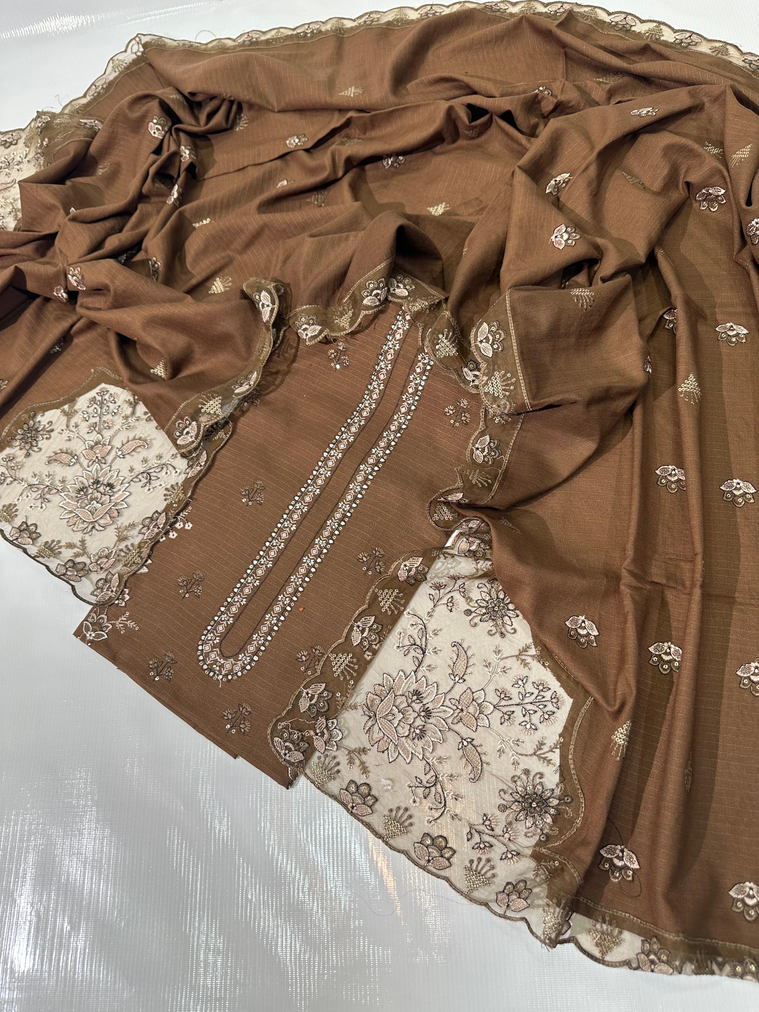 Luxury 3 Pcs khaddar Embroidered Suit Ustitched
