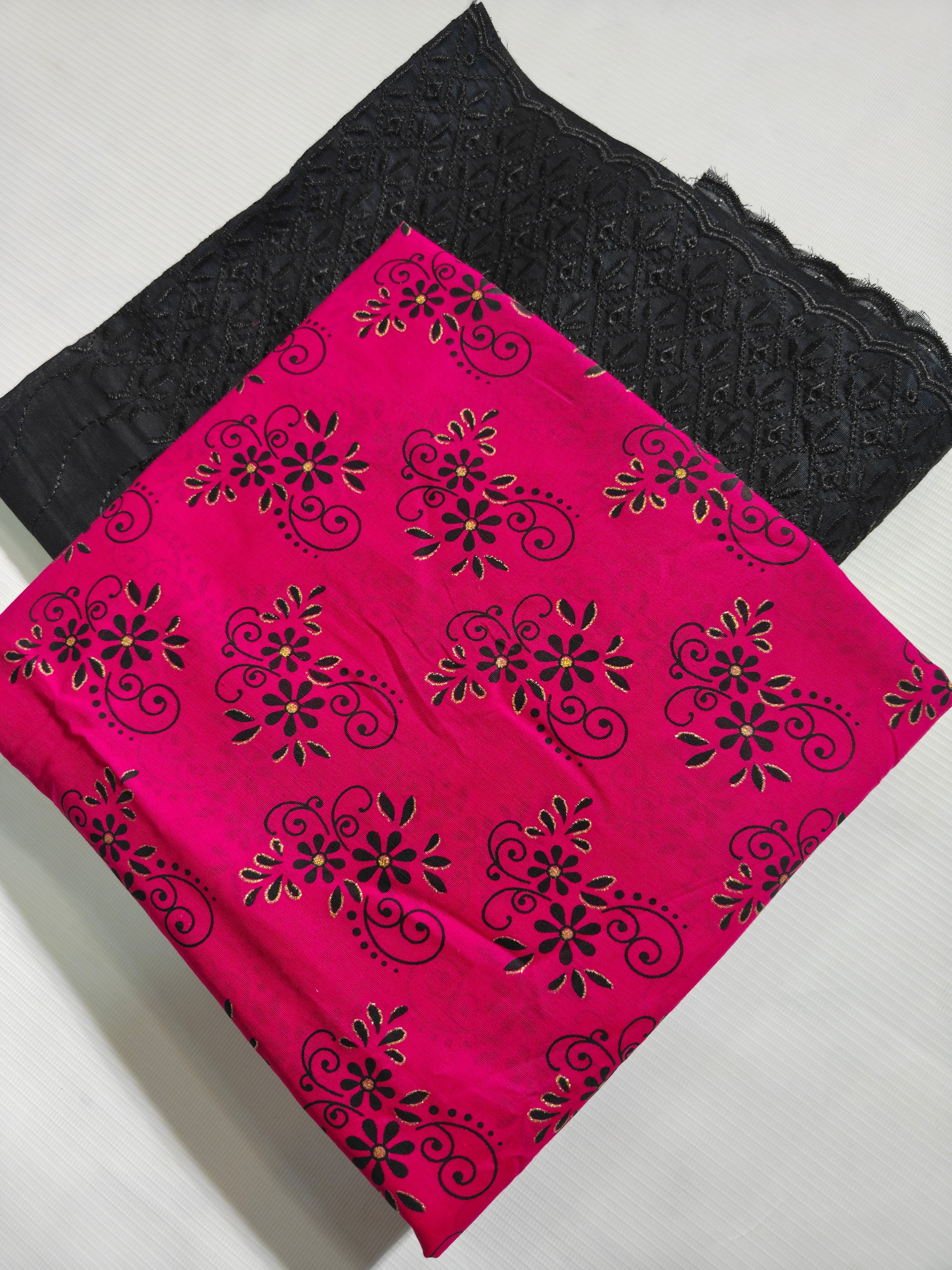 Printed Shirt With ChikanKari Trouser 2Pc | Shock.Pink-Black