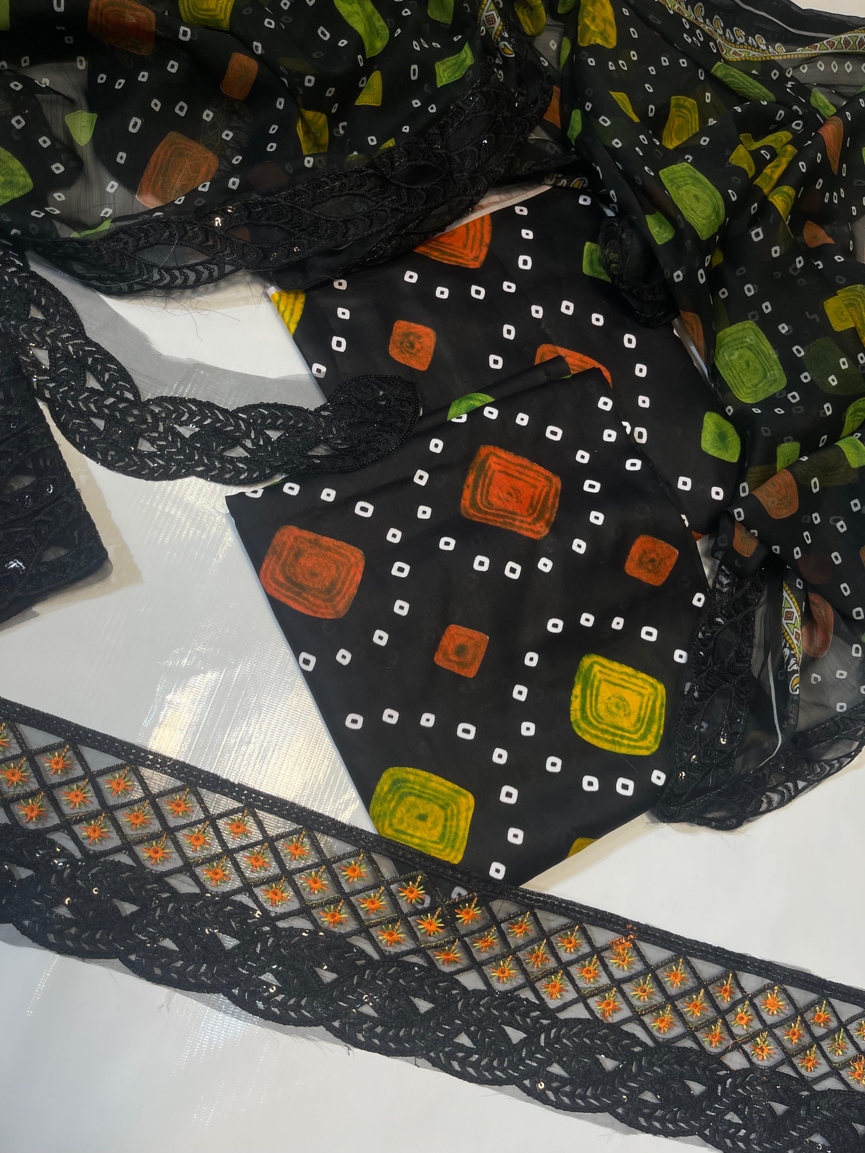 Dhanak Bana Dora Embroidered 3 PC | Black
