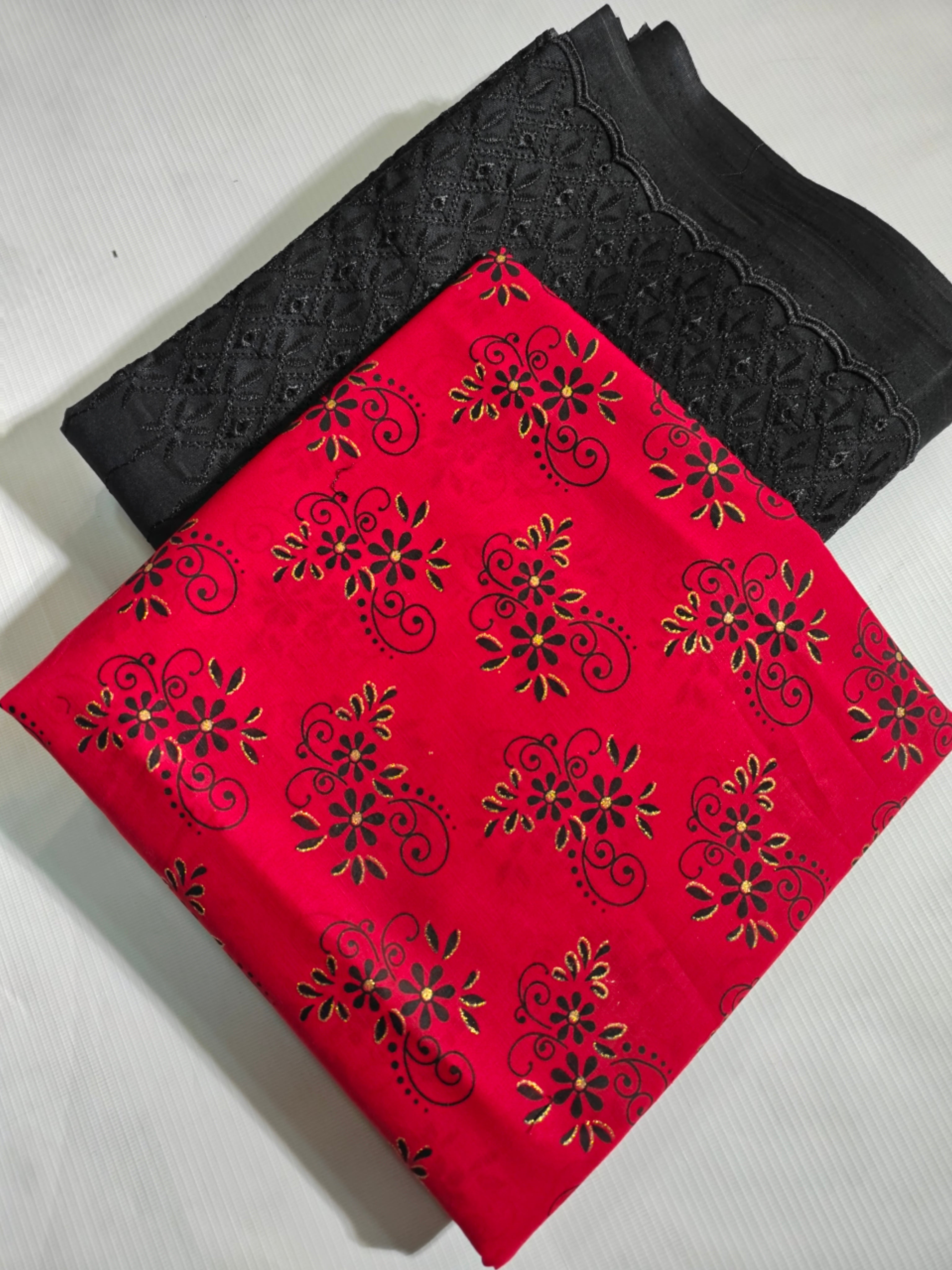 Printed Shirt With ChikanKari Trouser 2Pc | Red-Black