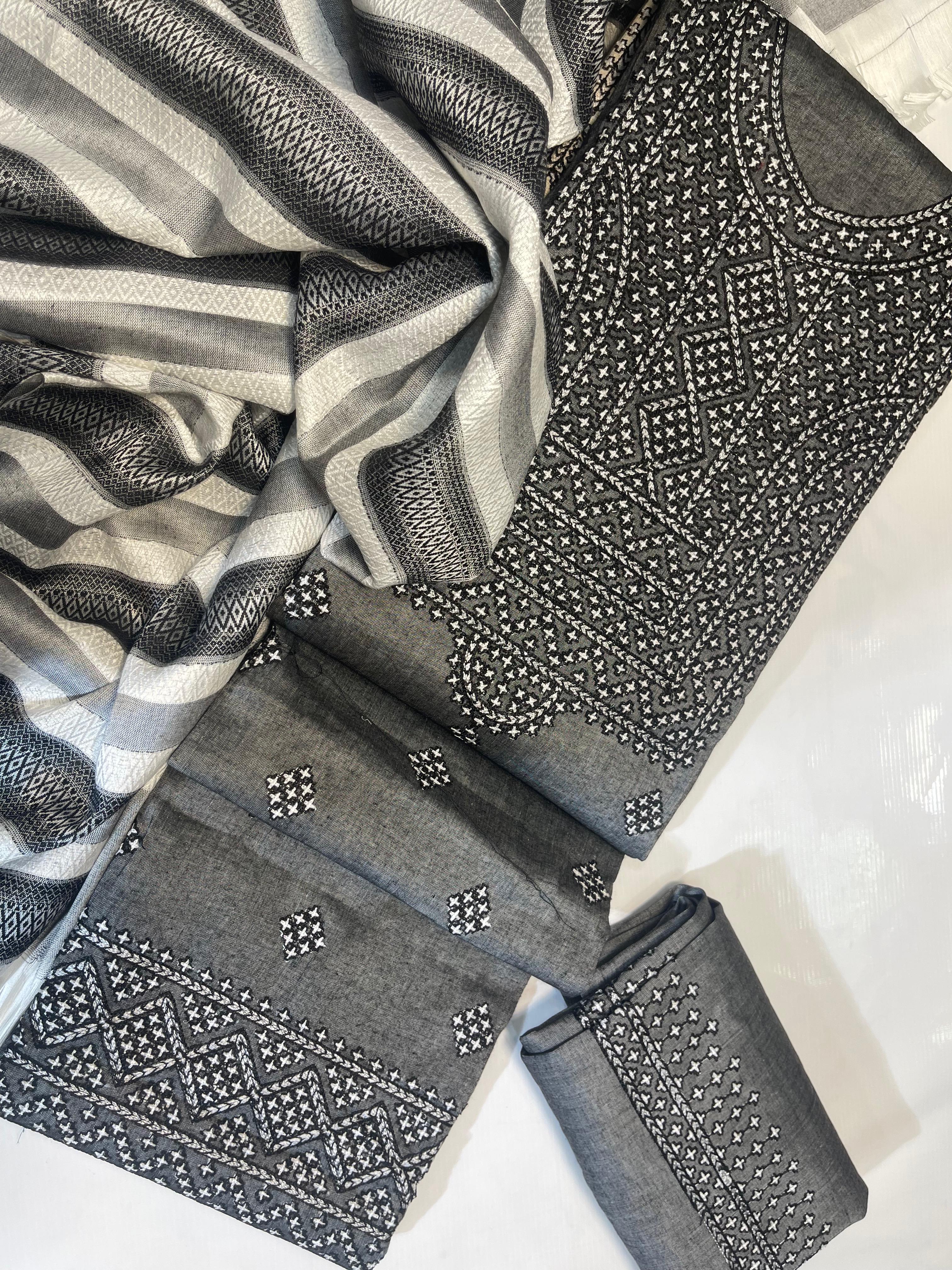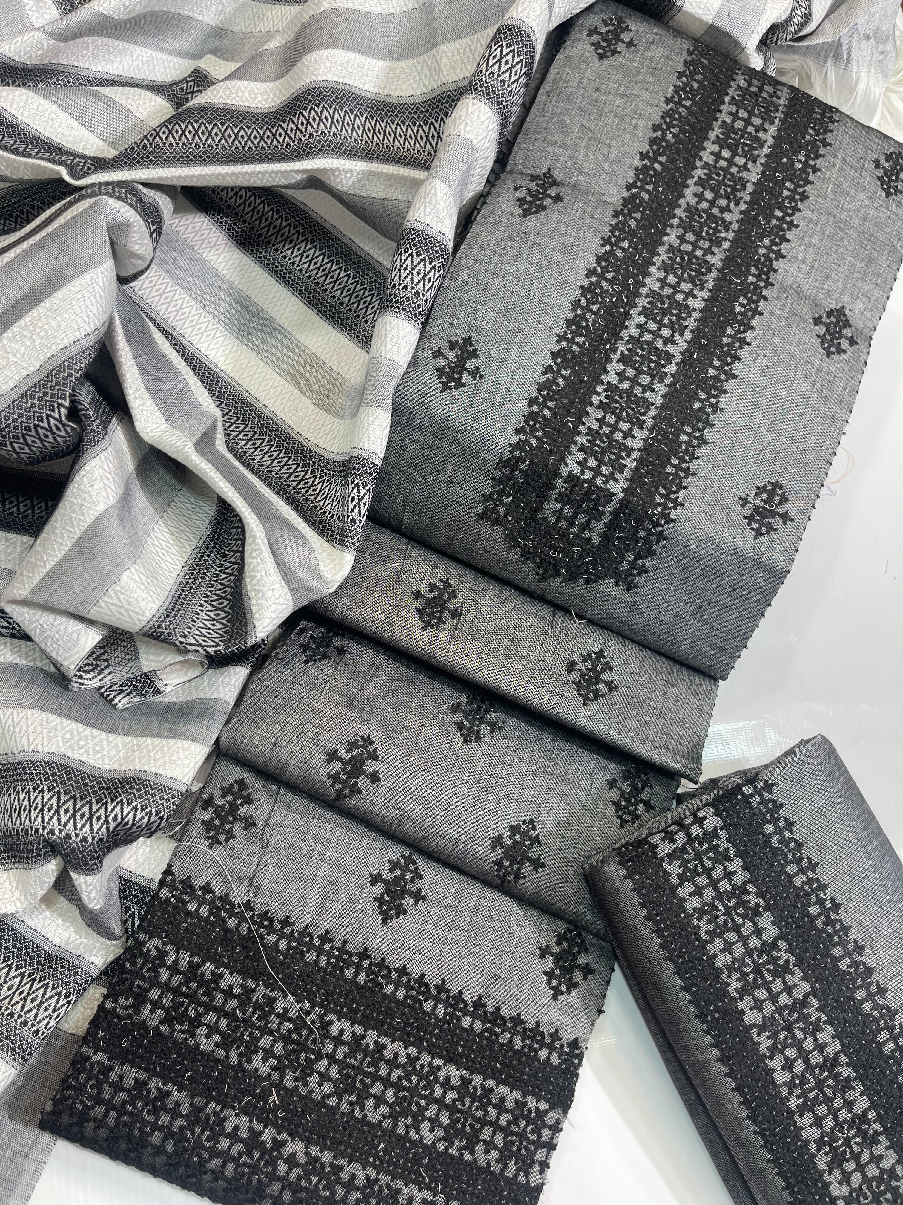 Khaddhar Luxury Unstitched 3 Pcs | Grey-Black