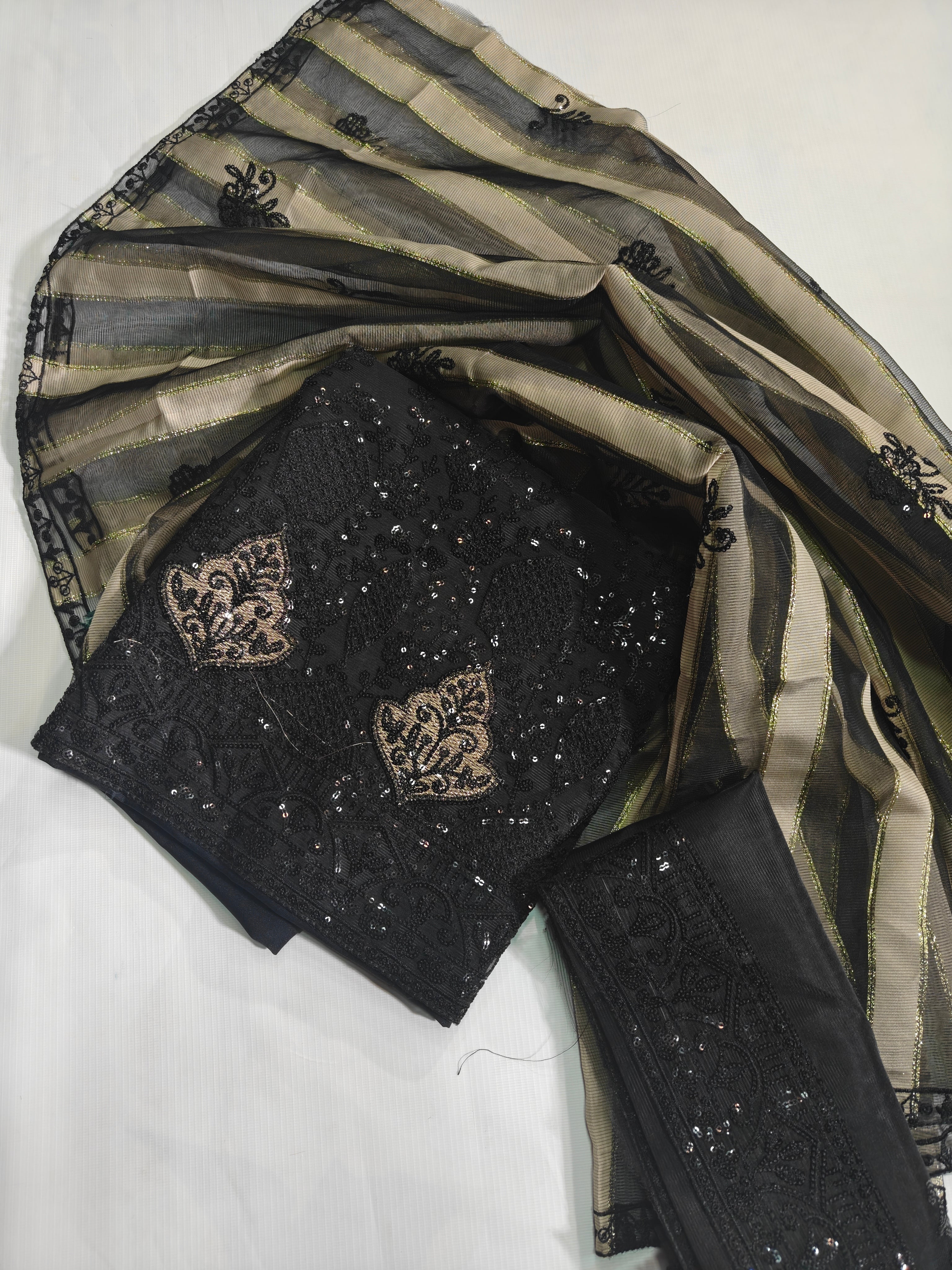 Dhanak Bana Dora Embroidered 3 PC | Black