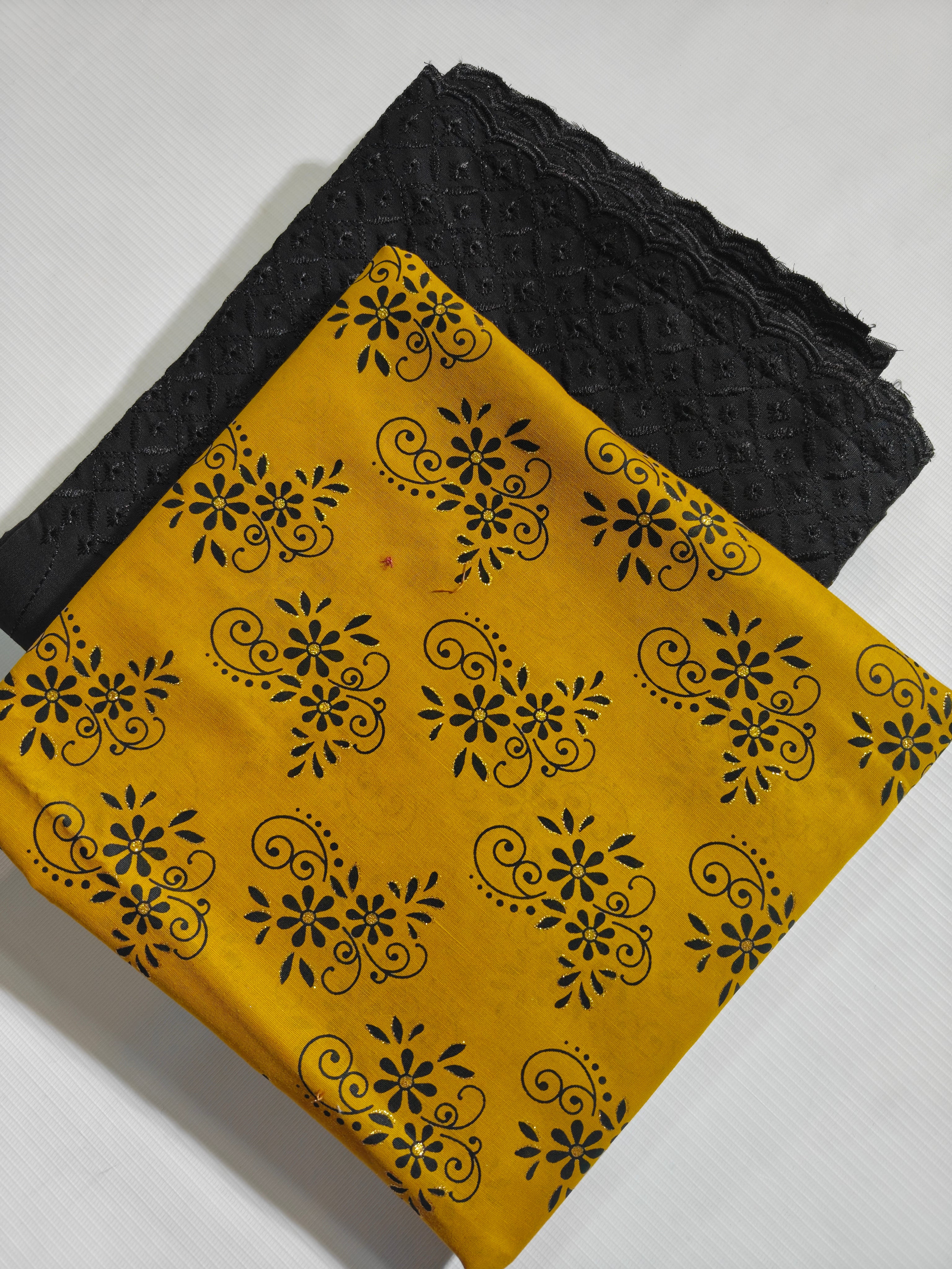Printed Shirt With ChikanKari Trouser 2PC | Mustard-Black