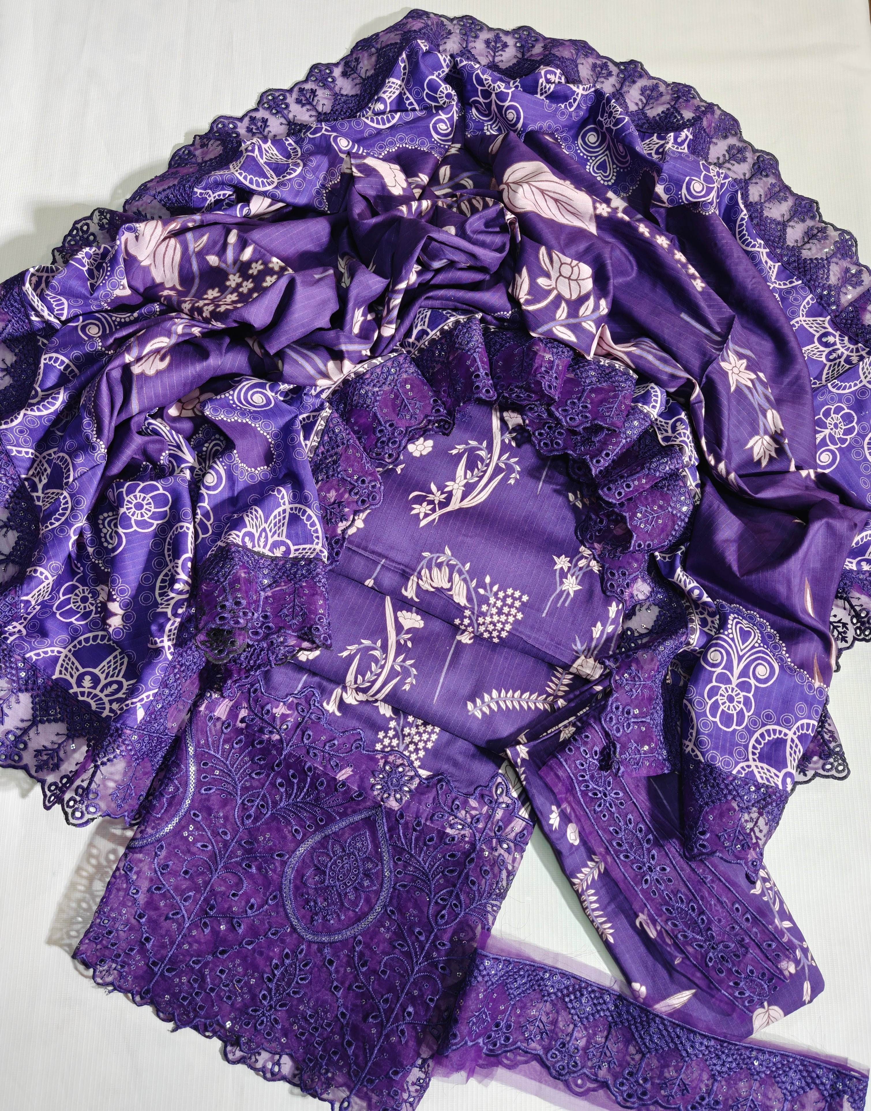 Dhanak Bana Dora Embroidered 3 PC | Purple