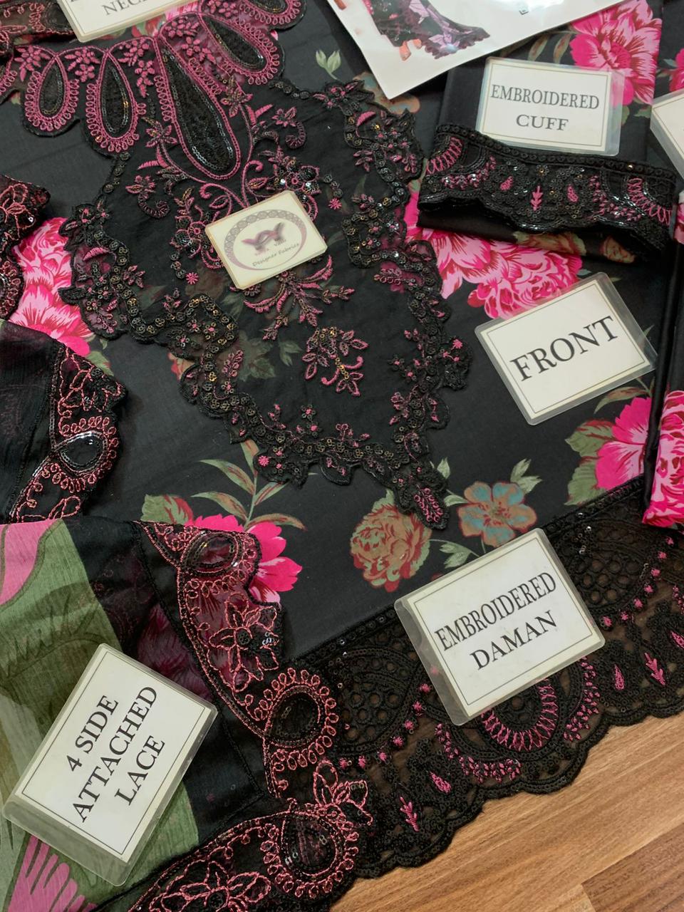 - Dupatta: Printed Chiffon with 4 side Aplic