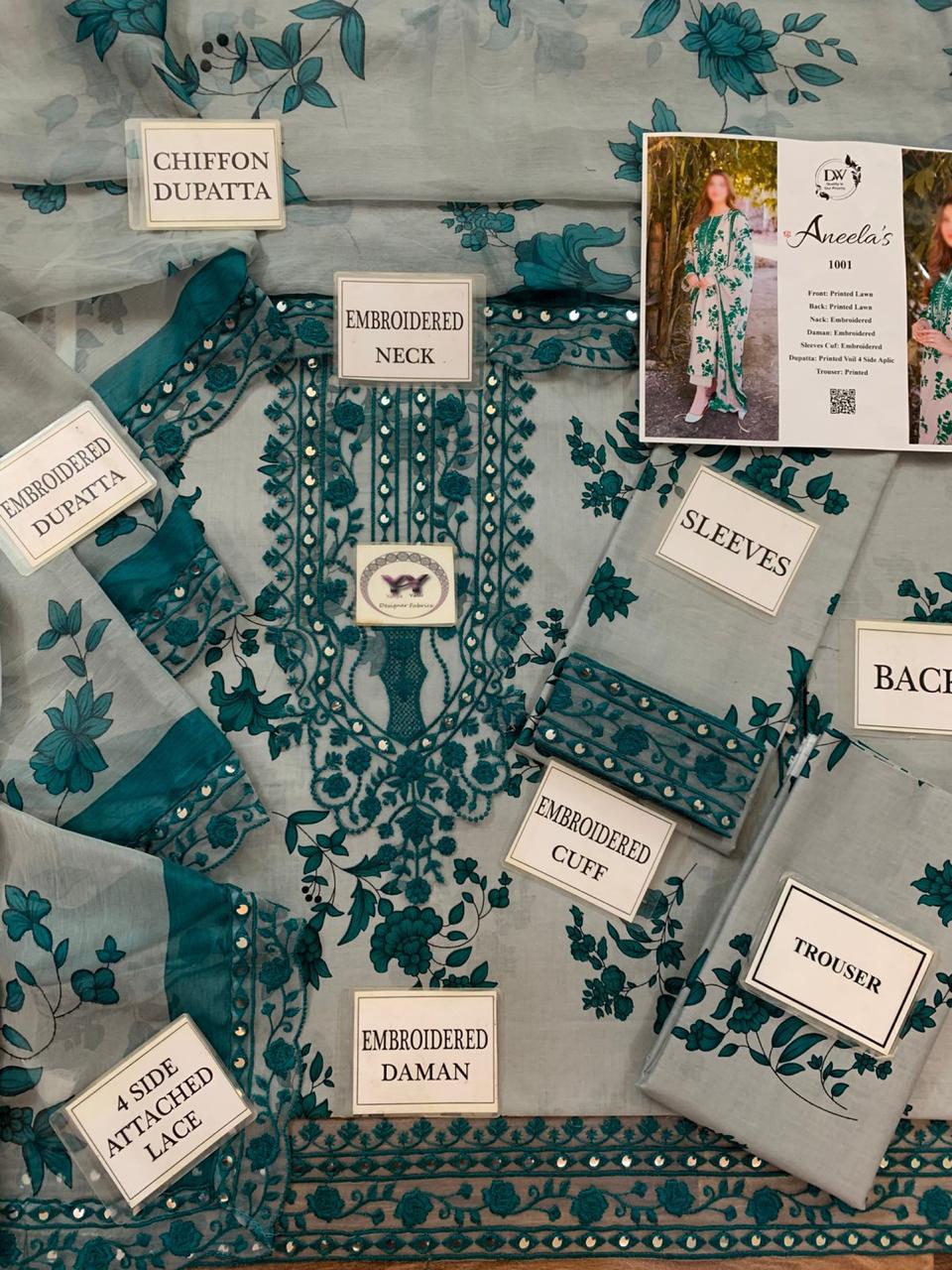 - Dupatta: Printed Chiffon with 4 side Aplic