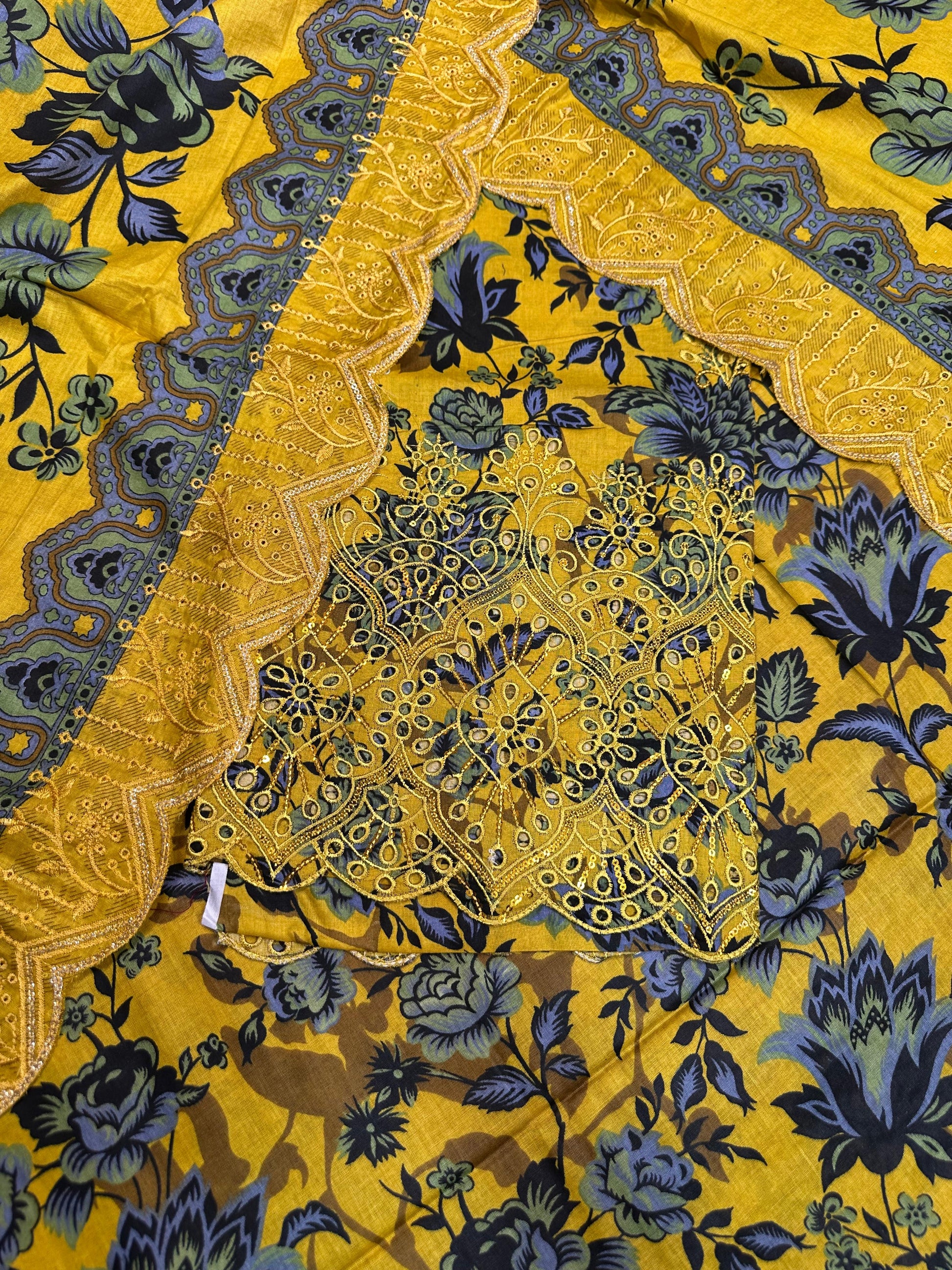 Yellow-Black Printed Chikan Kari 3 Pcs